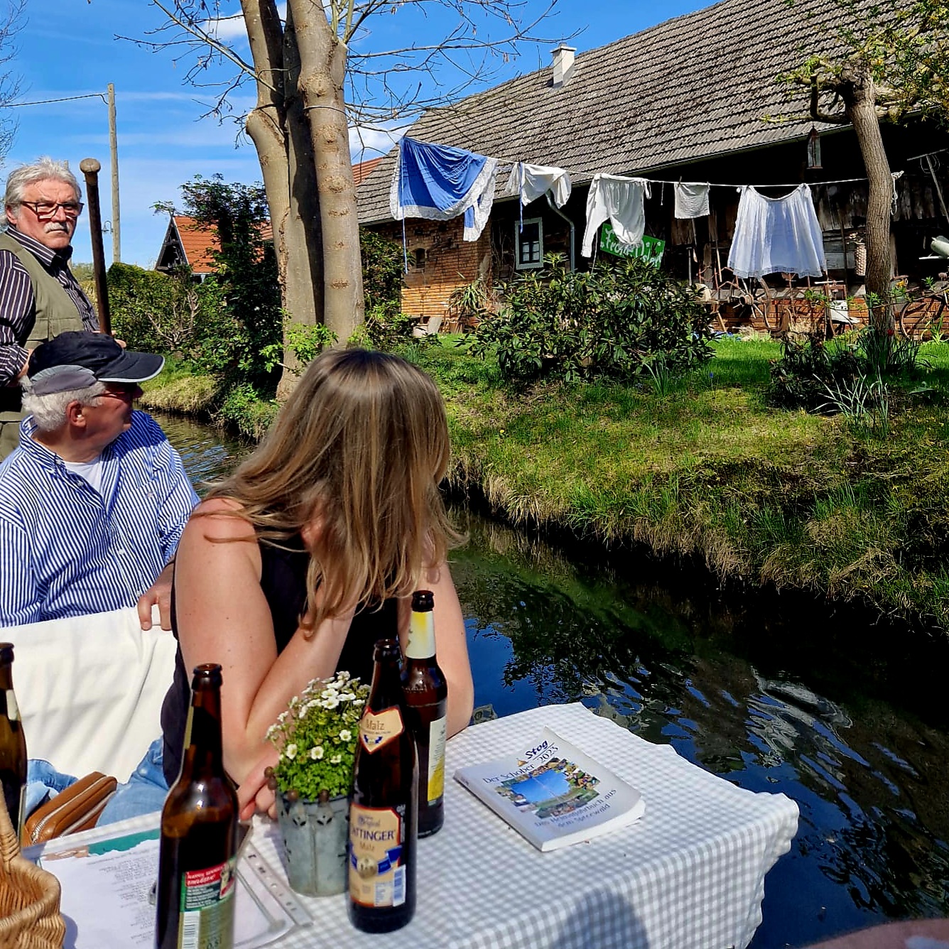 Wir hingegen haben uns gemütlich durch die Sonne schippern lassen, um nach einem weiteren kleinen Marsch in der Kolonieschänke ein Plätzchen im Biergarten zu suchen. Mit leckerem Matjes, sowie kalten Getränken, ließen wir die Tour des Tages Revue passieren. Auf dem weiteren Rückweg unterhielten wir noch eine komplette Eisdiele, als wir dort einfielen, stehend unser Eis schleckten und die Männer mit den hiesigen Damen ins Gespräch kamen. „Ich glaub, die steht auf mich!“, philosophierte mein Onkel Bobby, während Ingrid mich kopfschüttelnd und grinsend ansah. „Du bist das Schärfste zwischen Burg und Lübbenau…“ und so.